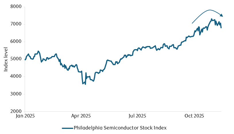 In the current financial landscape, a dichotomy exists between high-growth structural technology demand i.e. artificial intelligence (AI), and short-term cyclical credit risks. The two shouldn’t be directly connected but, as is so often the case, the best performing assets are susceptible to pullbacks when investor anxiety rises. That seemed to be the case last week.